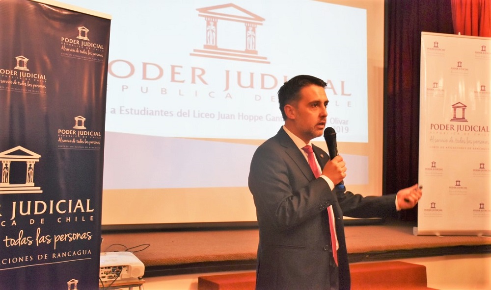Más de 200 estudiantes del Liceo Juan Hoppe Gantz y del Colegio Gultro de la comuna de Olivar, asistieron a la charla sobre el contenido de la ley de Responsabilidad Penal Adolescente (RPA) y cómo se estructura y funciona el Poder Judicial que dictó el presidente de la Corte de Apelaciones de Rancagua, ministro Pedro Caro.