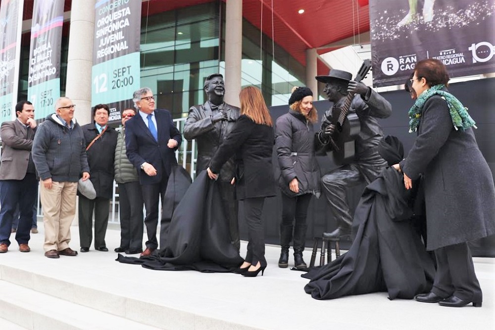 Seguido, los presentes se dirigieron a la salida del teatro para descubrir el monumento de los hermanos Lucho y Arturo Gatica, que estaba al interior del recinto cultural y que quedó desde ahora en el frontis, a disposición de todos los peatones que pasan por Millán. Recordemos que la obra de arte fue esculpida el 2015 por Sergio Urbina y Fernanda Cerda.