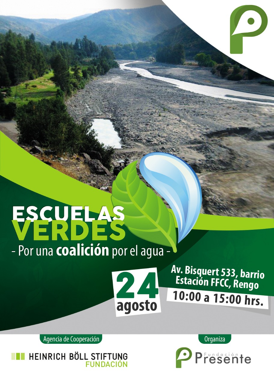 El próximo sábado 24 de agosto a partir de las 10:00 AM en Rengo (Bisquertt 533), se llevará a cabo la segunda de una serie de Escuelas Verdes, que buscan la creación a nivel nacional de una gran Coalición por el Agua y que permita conocer mejor el territorio del Río Claro y su uso, además de concientizar a la sociedad acerca de las problemáticas medioambientales que aquejan a la zona.