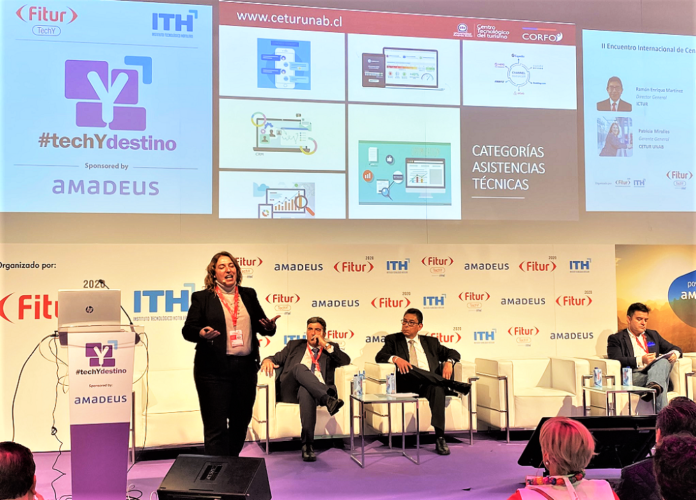 Patricia Miralles, Gerente del Centro Tecnológico del Turismo de la Universidad Andrés Bello (CETUR- UNAB) que cuenta con el apoyo de CORFO, fue la encargada de presentar en el pabellón 10 de FITUR la gestión e impactos de la digitalización de empresas de turismo en Chile, en base principalmente a la experiencia recabada por el centro que dirige con más de mil micro, pequeñas y medianas empresas que atendidas.