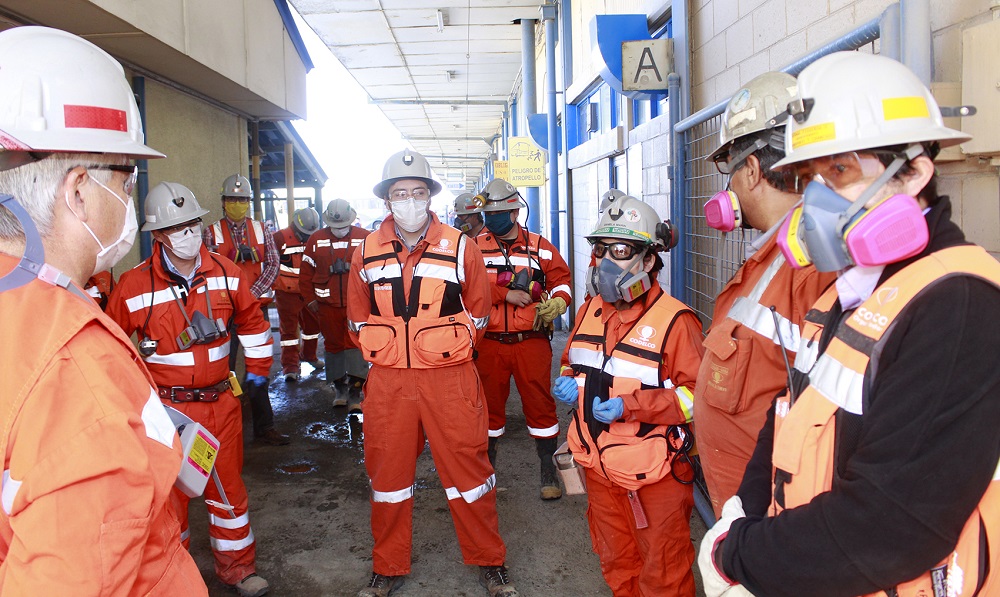 El presidente del Directorio, Juan Benavides, y el presidente ejecutivo, Octavio Araneda, visitaron la División para ver cómo funcionan las medidas adoptadas para el cuidado de trabajadoras y trabajadores y enfatizar que el país necesita más que nunca la continuidad operacional de toda la Corporación.