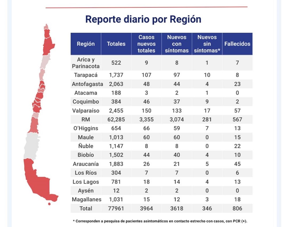 Así, desde la llegada del virus a Chile se han contagiado 77.961 personas.