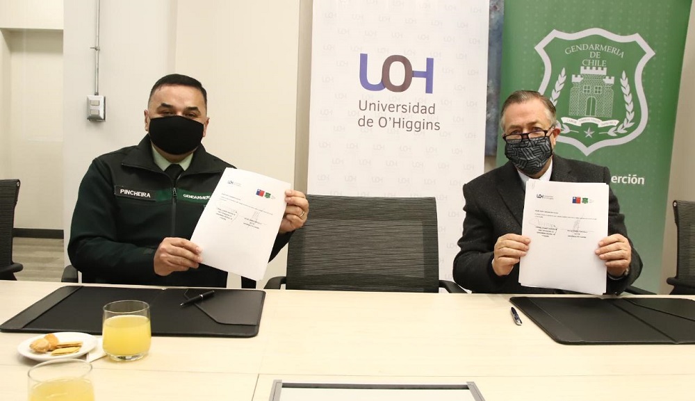 El acuerdo fue suscrito por el Rector de la UOH, Rafael Correa, y el Coronel Leandro Pincheira Millar, Director Regional de Gendarmería, en dependencias del Campus Rancagua de la Casa de Estudios.