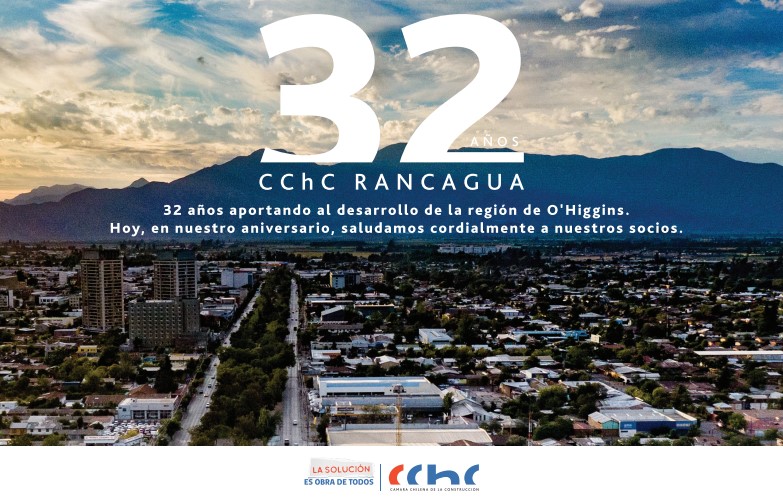 Por todo lo anterior, como presidente de la CChC Rancagua, quiero hoy desear a través de estas líneas un muy feliz aniversario a toda la familia gremial de la región de O’Higgins. Estoy seguro que trabajando unidos, con optimismo y comprometidos como lo hemos hecho durante estos 32 años, saldremos de esta crisis, seguiremos forjando nuestro gremio y lograremos seguir siendo un aporte en la región tanto en lo laboral como en el bienestar y calidad de vida de las personas.