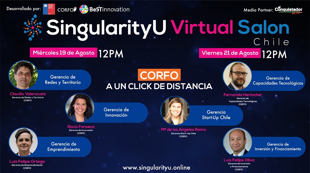 “Hemos querido poner a disposición de CORFO Biobío nuestra plataforma de SingularityU Virtual Salón con el propósito de acelerar a través del conocimiento y la información, los procesos de transformación de las Pymes y Startups en Chile. Hoy los chilenos de norte a sur debemos estar mejor preparados con conocimiento de futuro para enfrentar esta crisis. Estamos viviendo un momento clave de grandes oportunidades para crear nuevos productos y servicios que resuelvan necesidades de los consumidores de la Pandemia y PosPandemia donde Corfo juega un Rol estratégico para impulsar invirtiendo capital y capacidades al talento emprendedor nacional”, señaló Bárbara Silva, Directora SingularityU y CEO de BeSTinnovation .