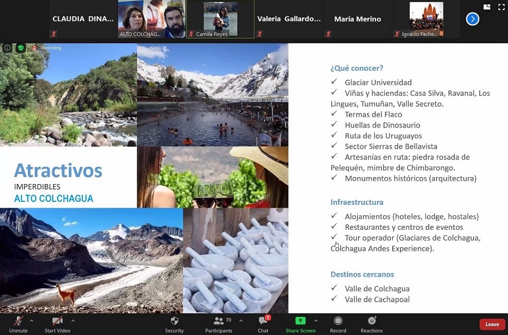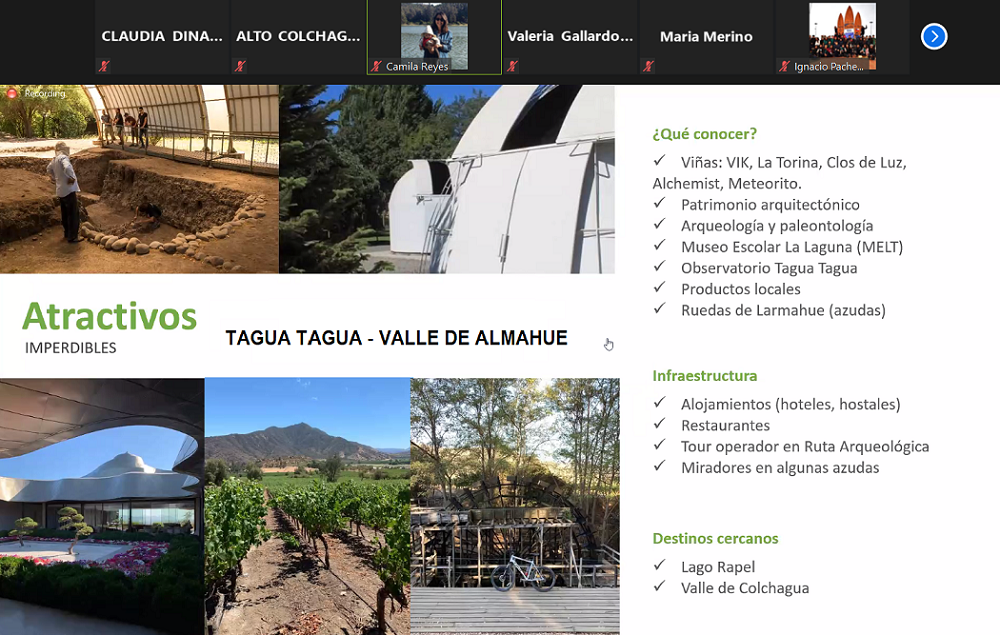 Gracias al trabajo colaborativo público – privado impulsado por Sernatur O’Higgins, se pudo coordinar esta actividad que reunió a representantes de los destinos de Alto Colchagua, Alto Cachapoal, Valle de Cachapoal, Lago Rapel, Tagua, Tagua–Valle de Almahue, Valle de Colchagua, Pichilemu y Navidad, para así dar a conocer la oferta turística de la región, para cuando sea el momento de la recuperación turística.