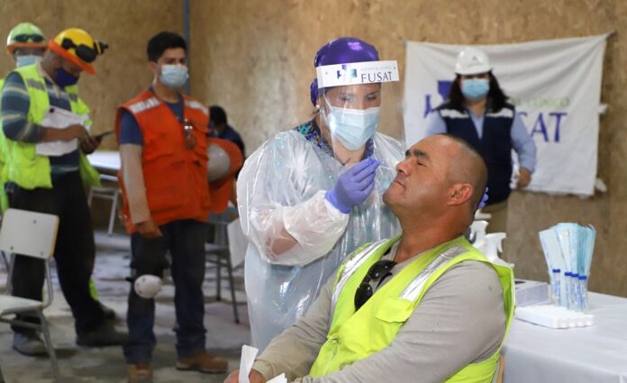 En el marco de la campaña Juntos Nos Cuidamos, la División y FUSAT concretaron un operativo móvil de toma de exámenes PCR en una obra ubicada en avenida Membrillar de Rancagua.