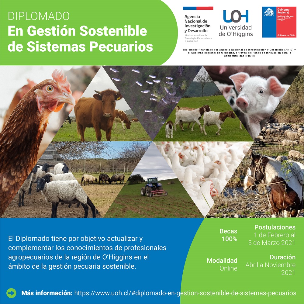 En este contexto, la UOH, a través del Comité de Selección de Estudiantes (CSE), llama a los y las interesadas en participar, a postular al Concurso de Becas para cursar el Diplomado Gestión Sostenible de Sistemas Pecuarios (GSSP)a impartirse en modalidad online y destinado a la Región de O’Higgins.