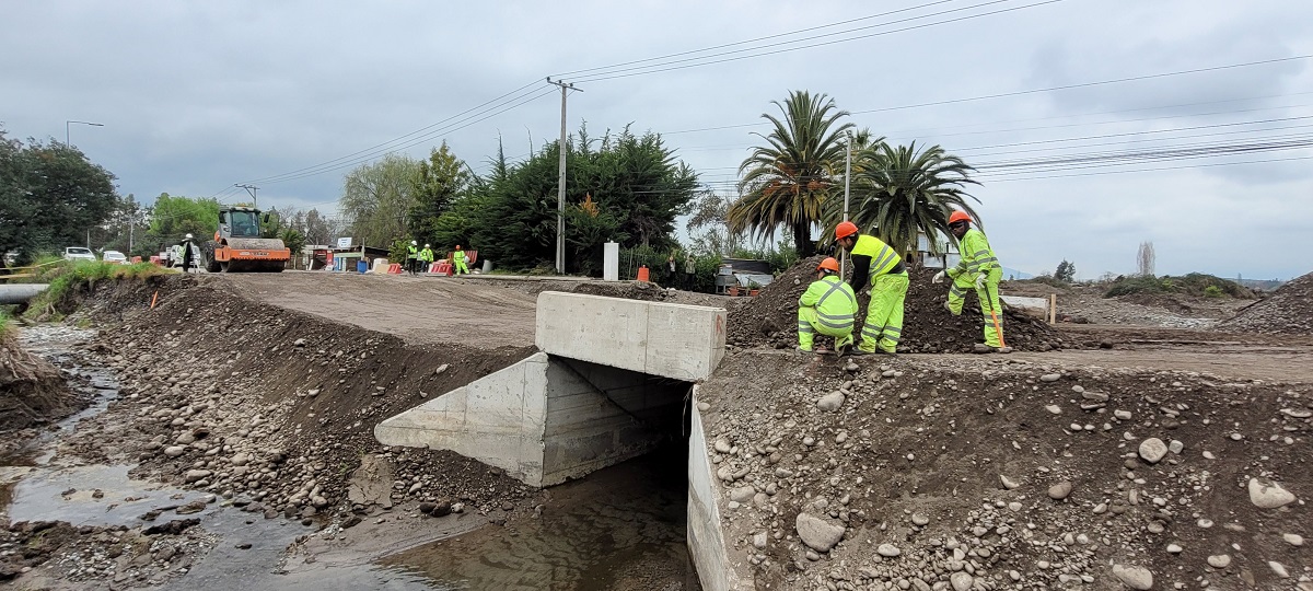La seremi María de los Ángeles Latorre destacó los avances en la gestión de la reparación de este socavón señalando que “hemos avanzado en las defensas que finalmente encauzaron el río para cortar acá el exceso de agua, y ya actualmente estamos trabajando en la compactación del terraplén para restaurar la conectividad a las personas que transitan entre estas dos comunas. Agradecemos el apoyo del municipio, la Delegación Presidencial y SENAPRED por su coordinación en los trabajos de canalización de las aguas para desaguar el socavón, permitiendo la ejecución de estas obras que restablecerán la conectividad en el sector».