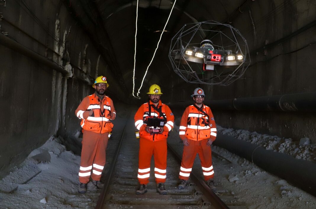 Con un dron especializado para operar en mina subterránea, el equipo de la Unidad del Proyecto Interflow, de la División El Teniente, comenzó la inspección del túnel principal del Ferrocarril Teniente 8, que les permitirá levantar imágenes y un detallado modelo 3D del lugar.