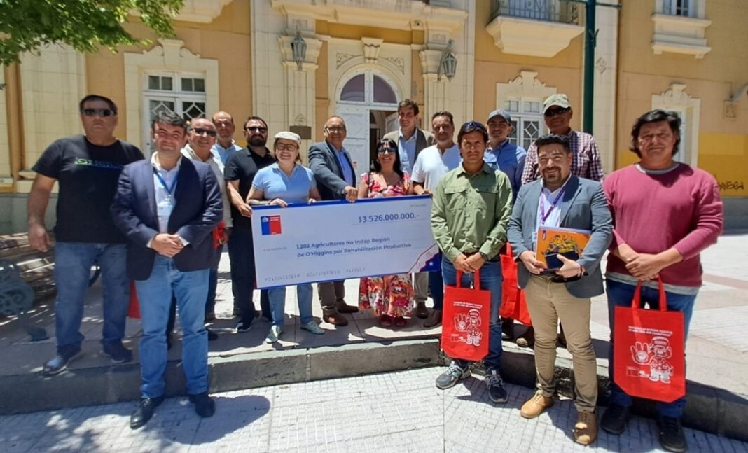 Encabezado por el delegado Presidencial Regional, Fabio López Aguilera y por el Seremi de Agricultura de O’Higgins, Cristian Silva Rosales, usuarios no Indap afectados por las inundaciones de agosto 2023, recibieron ayudas de $1, $3 y $5 millones.