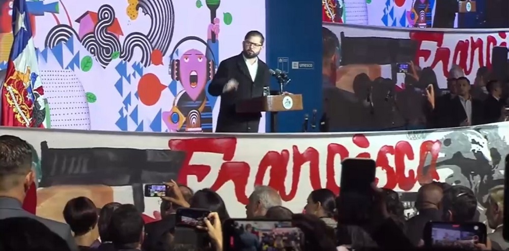 Durante su intervención en el evento de la Unesco por el Día Mundial de la Libertad de Prensa, el presidente Gabriel Boric fue increpado por ex compañeros de trabajo de Francisca Sandoval, periodista del canal Señal 3 La Victoria, quien recordemos murió tras recibir impactos de bala mientras cubría la marcha por el Día de los Trabajadores por la Alameda en Santiago hace dos años atrás.