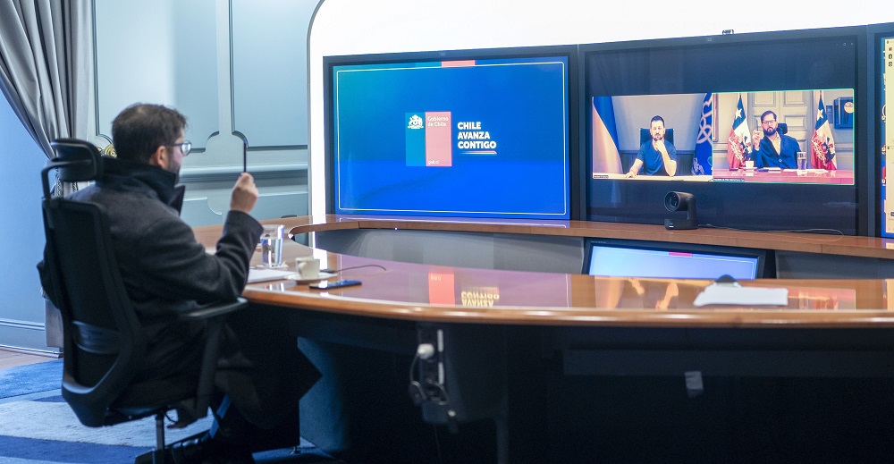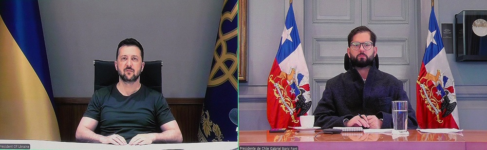 Este miércoles, el Presidente de la República, Gabriel Boric Font, sostuvo una videoconferencia con el Presidente Volodímir Zelenski, quien lo invitó a participar de la Cumbre Mundial de la Paz por Ucrania a efectuarse en Lucerna, Suiza, el 15 de junio de este año.