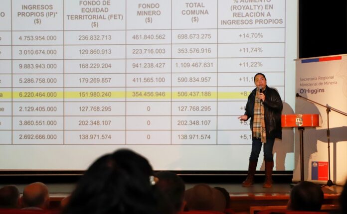 Hasta el teatro de Requínoa llegaron autoridades regionales para dar a conocer los avances en la distribución de los recursos de la Ley de Royalty Minero en O’Higgins. Esta iniciativa, que entró en vigor en enero de este año, repartió 8.948 millones de pesos en 33 comunas de O’Higgins, recursos para los que los municipios han planificado sus primeros destinos.