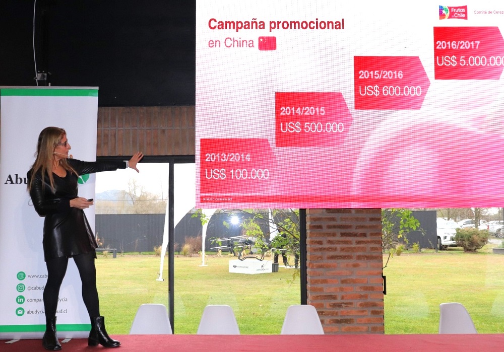 A modo de ejemplo indicó: “Desde el año 2013 comenzamos a invertir en campañas promocionales, y si bien, partimos con una inversión bastante pequeña, el crecimiento desde ese momento comenzó a expandirse. En 2016 y 2017 invertimos un monto más considerable y fue en ese período que se observaron los mayores crecimientos de las exportaciones de cerezas, en especial en China, nuestro principal destino (…)  Actualmente, hacemos campañas en 6 mercados,  donde China es el más importante y se lleva gran parte de nuestros recursos, además de mercados como EEUU y Corea, con el objetivo de diversificar mercados. Tememos mercados de exploración como India, Vietnam, Tailandia. Es decir buscamos diversificar mercados junto con aumentar el consumo y profundizar los mercados que ya tenemos (…) Detrás de todas las campañas de promoción hay todo un estudio y análisis con la finalidad de saber cómo nos fue, dónde estuvimos  bien, y también identificar cómo y dónde tenemos que avanzar. Nuestro objetivo es incrementar el consumo de cerezas y esto es importante porque somos los líderes de la categoría y si no incentivamos nosotros el consumo , no lo hará nadie”.