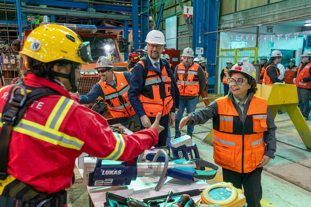 Aurora Williams, junto al presidente ejecutivo de Codelco, Rubén Alvarado, visitaron el área industrial de la División y participaron en el reconocimiento a las brigadas de rescate y emergencia e inauguraron el Centro de Entrenamiento de la Gerencia de Minas con la entrega de cascos a 25 aprendizas que ingresaron a trabajar a la mina subterránea.