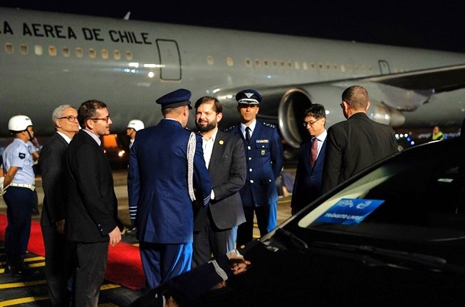 Boric junto al ministro de Relaciones Exteriores, Alberto van Klaveren, llegó a Brasil para participar de la Cumbre del G20, en la cual Chile asiste como país invitado. El Jefe de Estado fue recibido por el embajador de Chile en Brasil, Sebastián Depolo; el cónsul en Río de Janeiro, Carlos Marín y el Jefe de la Oficina de Río del Ministerio de Relaciones Exteriores de Brasil, embajador Breno Costa.