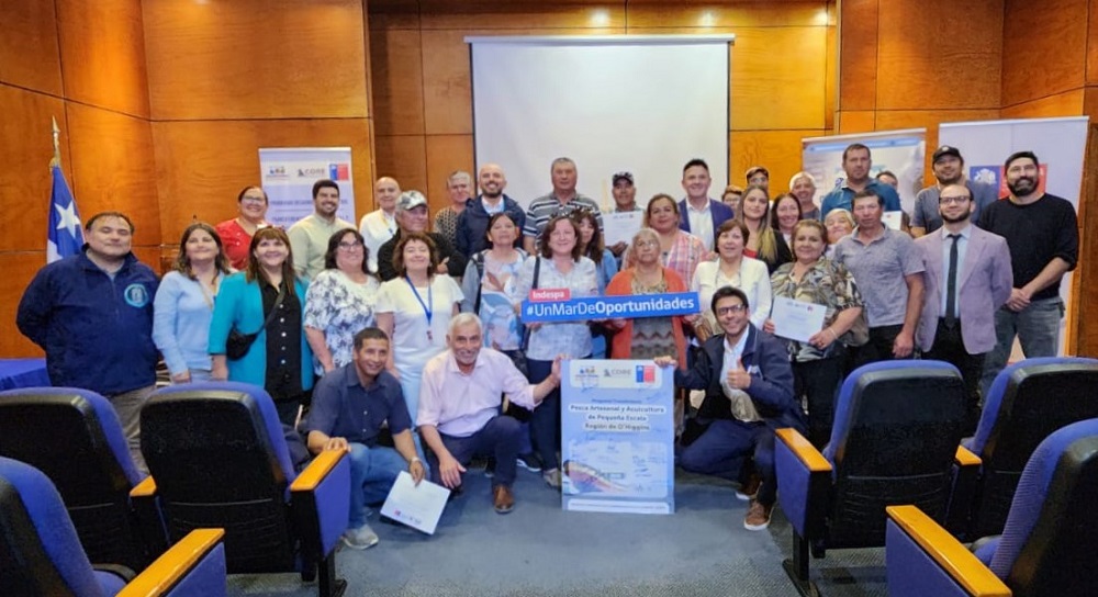 El gobernador regional de O’Higgins, Pablo Silva Amaya junto al director nacional del INDESPA, Leonardo Llanos Huerta, encabezaron la entrega de 266 millones de pesos del segundo llamado del programa Transferencia Pesca Artesanal y Acuicultura de Pequeña Escala para 15 organizaciones del sector pesquero artesanal de Navidad, Litueche, Pichilemu y Paredones. Se trata de 21 iniciativas productivas y comerciales que benefician a 371 personas, 35 por ciento de ellas mujeres, vinculadas a la pesca artesanal y a la recolección de mariscos y algas.