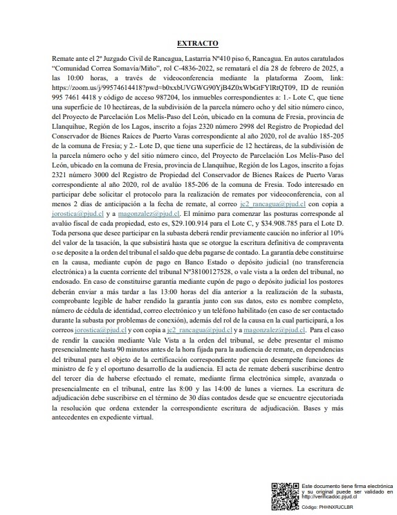 LEGALES EXTRACTO febrero 5, 2025 666 Cuota FacebookTwitterWhatsAppImpresión REMATE ANTE EL 2° JUZGADO CIVIL DE RANCAGUA