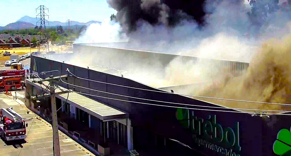 Durante la tarde del viernes, un incendio de grandes proporciones se registró en el supermercado El Trébol en la comuna de Machalí, región de O’Higgins.