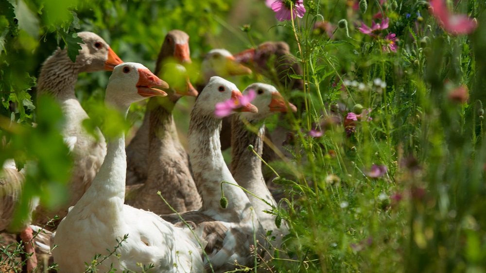 Estas aves se alimentan de bichos y malezas que perjudican las parras, a la vez que desechan materia orgánica rica en nutrientes esenciales para el crecimiento vegetal. En términos simples, los gansos limpian los caminos y abonan el suelo, contribuyendo a mantener las parras sanas.