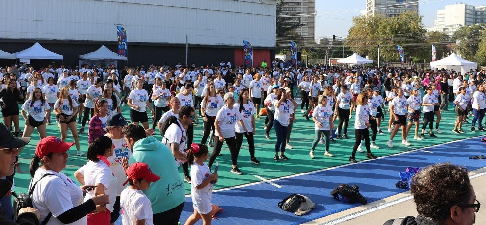 Una multitud se reunió en el gimnasio Hermógenes Lizana para participar de “La corrida más larga de Chile”, actividad organizada por el Ministerio del Deporte y el Instituto Nacional de Deportes que se realizó de modo simultáneo este 11 de abril en todas las regiones del país y que en Rancagua convocó familias, adultos mayores, mujeres, hombres, niñas y niños de todas las edades con un denominador común: pasarlo bien practicando actividad física.